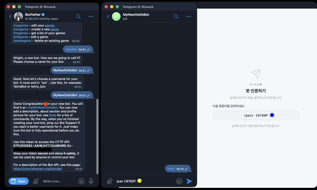 1. 지금까지 잘 따라오셨다면, 텔레그램에 나만의 AI 봇을 연결하셨습니다. 축하합니다.
